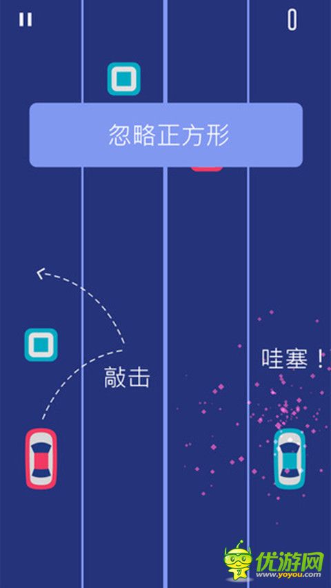 同時控制紅色和藍(lán)色汽車。 一路上收集所有圓圈和躲避方塊兒。只有兩只手哦怎么同時控制好兩輛車呢!