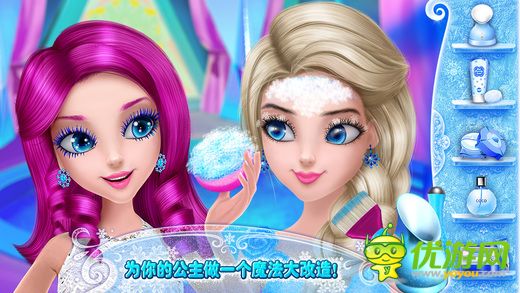 打造屬于你的個性化三維冰雪公主,200多款皇室套裝和配飾供你挑選!你甚至可以為你的公主挑選發(fā)色和膚色!去皇家雪地溫泉水療中心做個溫泉水療吧,擦上專業(yè)的化妝品,炫耀一下你漂亮的冰雪造型!