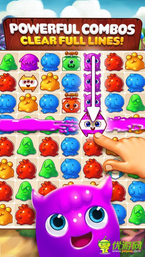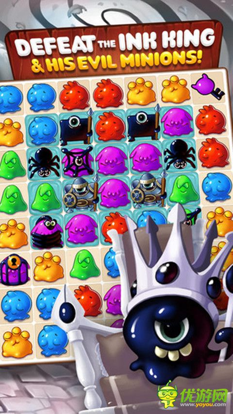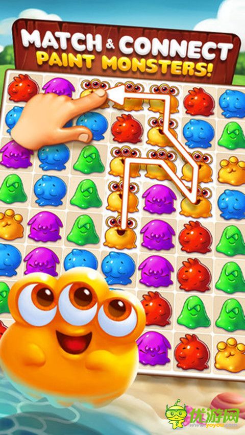 《畫怪物》是一款連線消除闖關游戲,將同樣的顏色連一起消除后得分闖關,隨機出現(xiàn)的冰塊、墨水怪和墨水囚籠是你的勁敵,在規(guī)定步數(shù)內(nèi)消除它們。