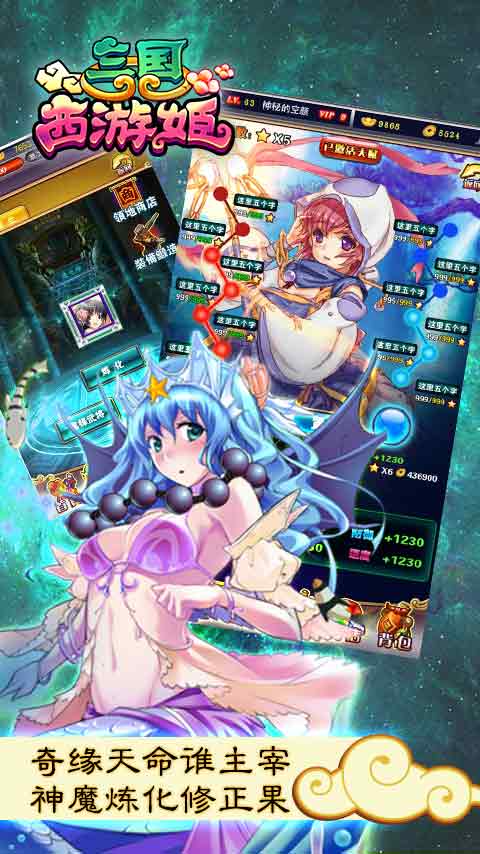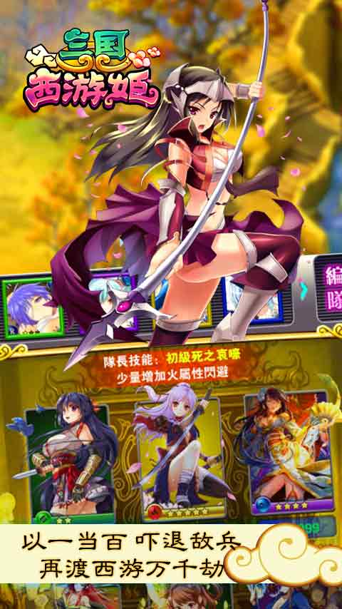 《三國西游姬》創(chuàng)新合并了三國、西游的故事線,西天取經(jīng)和統(tǒng)一天下兩不誤,毫無違和感的同時令玩家眼前一亮!可謂是三國和西游碰撞,武將與妖魔的斗爭!《三國西游姬》使玩家感受不一樣的傳說故事,享受不一樣的視覺沖擊! 游戲特色 1.自動戰(zhàn)斗,解放雙手! 2.戰(zhàn)斗不孤單,女神來相伴! 3.配樂準(zhǔn)確,精確配合不同場景! 4.畫面美輪美奐,技能效果震撼! 5.卡牌豐富多樣,組合變化多端! 6.卡牌設(shè)計精美,技能特效華麗! 7.操作簡單有趣,但不失策略性! 8.諸多玩家互動,對戰(zhàn)精彩犀利! 9.全武將卡牌女神化,滿足你的眼球! 10.豐富多彩的地圖副本等待玩家去征服!