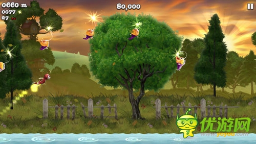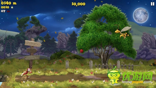 《螢火蟲向前沖》是一款十分有趣的跑酷類游戲,寧靜的夏天,夜空中繁星點點,精致的2.5D卡通畫面,頗有3D的效果,它把大家?guī)肓艘粋€美輪美奐,鮮花盛開的大森林中。游戲操作簡單,大家只需點擊左邊屏幕便可操控螢火蟲先生向前狂奔,而向上不斷滑動屏幕,可以操控螢火蟲先生向上飛翔并保持持續(xù)飛翔效果來躲避地面上隨時出現(xiàn)的障礙,未知的道路上我們會遇到各種奇葩的障礙,除了躲避之外還可以用點擊右邊發(fā)射櫻桃子彈的方式來消滅它們。還會不斷出現(xiàn)的驚喜,其樂趣無窮。