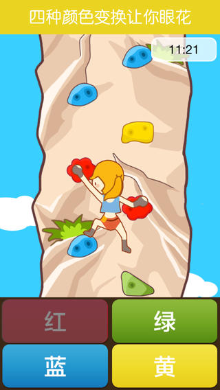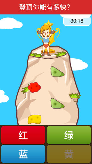 游戲玩法: 根據(jù)山上石頭的顏色在底部點擊對應(yīng)的按鈕,目標就是快速向山頂前進。點錯顏色可是會從山上摔下來的哦!