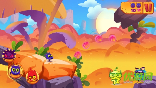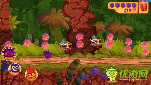 《強力冒險:Mighty Adventure》是一款橫版酷跑闖關(guān)游戲,冒險的路上要避開一堆敵人并收集泡泡,三個角色著實讓人手忙腳亂。游戲中給這三個角色分配了各自獨特的能力,一個能重踩,一個會雙段跳,還有一個沖破力極強。根據(jù)障礙物的不同,結(jié)合當(dāng)前的場景切換選擇合適的角色來避開障礙,闖過關(guān)卡。