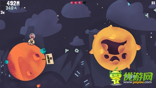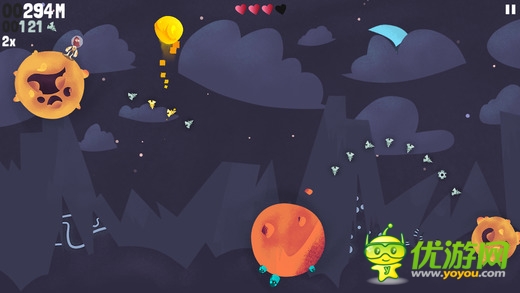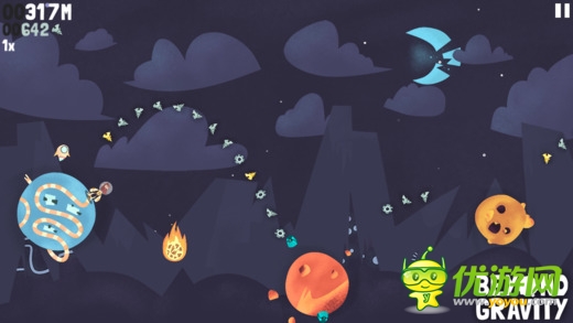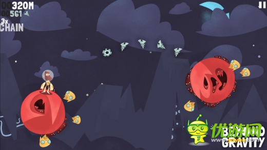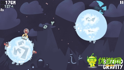 《超越重力 Beyond Gravity》是一款跳躍類型的高分挑戰(zhàn)游戲。對(duì)象是一個(gè)個(gè)模樣奇特的星球。玩家要控制我們的大胡子從一個(gè)星球跳躍到另一個(gè)星球上,同時(shí)收集散落在其中的飛船碎片,當(dāng)然還有各種道具可供你收集使用。游戲采用了簡(jiǎn)單的觸屏點(diǎn)擊操控,點(diǎn)擊整個(gè)屏幕的任意位置都可以操控人物進(jìn)行跳躍。游戲過程中收集到的碎片可以供你購(gòu)買新的裝備或是升級(jí)能力,讓你跳的更遠(yuǎn)哦。