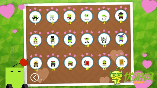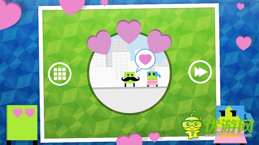 《Fallin Love - The Game of Love》游戲背景是一個綠色的小方塊,有一天他走在街上對一個姑娘一見鐘情了,不幸的是他愛的女人沒有注意到他,在得知她喜歡的是大胡子大叔后而踏上了尋愛之路的情節(jié)。玩法是闖關避開障礙收集愛心和道具來裝扮自己成為心上人喜歡的樣子。