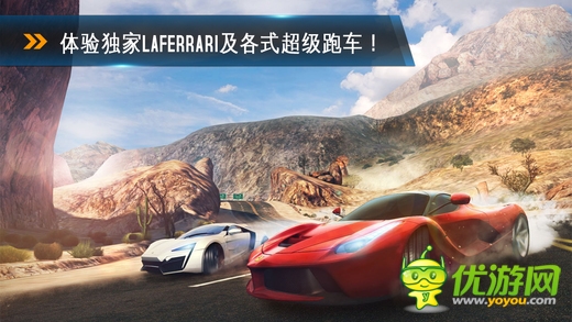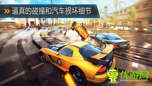 最棒的iOS娛樂賽車游戲系列來到了新轉(zhuǎn)折點(diǎn)!全新物理引擎打造全新 駕車體驗(yàn),屏氣凝神,感受動(dòng)態(tài)高 速特技的魅力!沖上坡道,騰空飛躍豪華夢幻賽車, 演繹桶滾和狂野360°跳躍,用特技在空中完成高難度動(dòng)作。 47輛高性能賽車(80%的新車?。喊↙amborghini Veneno,Bugatti Veyron,F(xiàn)errari FXX以及Pagani Zonda R在內(nèi)的 頂級授權(quán)制造商和車型 新錄制的高保真引擎聲,帶來讓人 沉醉的逼真音效。新的異國賽道:9種不同環(huán)境設(shè)定,包括威尼斯、法屬圭亞那、冰島以及內(nèi)華達(dá)州沙漠在內(nèi)的刺激賽道。 生涯模式中包含所有賽道的原型及鏡像版,還有大量隱蔽捷徑等你發(fā)現(xiàn)。為飆車狂打造的新特性:8大賽季,180場賽事盡在生涯模式,由次世代著色器,實(shí)時(shí)幾何反射及其他效果帶來的震撼視覺,感受新“傳染賽”和“門柱漂移賽”模式,細(xì)節(jié)化的損壞系統(tǒng)。