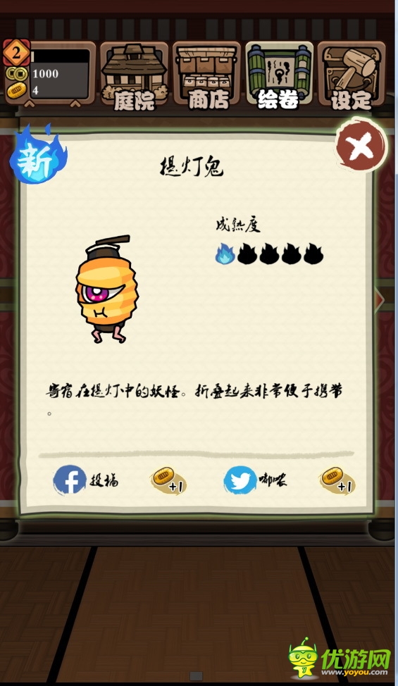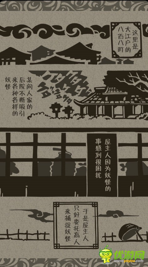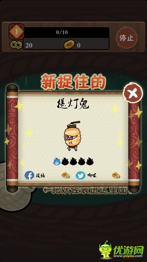 《庭院捕妖漢化版》是一款放置類休閑游戲。玩家只需在庭院里放置好美味的食物,再用籮筐和木棒罩在上面,之后就可以躲在角落里守株待兔。怪物的種類也是多種多樣,河童、燈籠怪、獨眼小僧、天狗等著名的妖怪都會成為你的捕獲對象,而且妖怪造型憨態(tài)可掬,簡直讓人愛不釋手。在內(nèi)置的商店中還可以買到妖怪們喜歡的各種食物,或者換一個大籮筐一次性捕獲更多的小家伙。