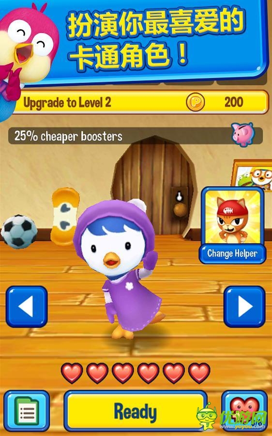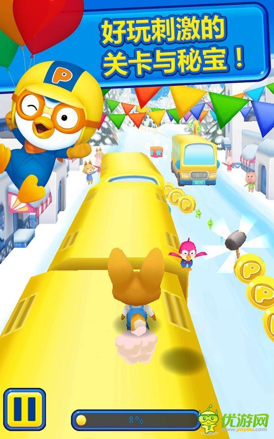 《波魯魯小企鵝大賽跑 Pororo Penguin Run》是一款以韓國(guó)國(guó)寶級(jí)卡通人物波魯魯為主角的跑酷游戲。游戲中可使用所有波魯魯卡通中的可愛角色,操作也是很簡(jiǎn)單,點(diǎn)擊屏幕和傾斜手機(jī)即可完成對(duì)游戲的控制。游戲中有著包羅萬象的跑道:冰宮、白雪皚皚的小鎮(zhèn)、綠地森林、隧道等等。還可以啟動(dòng)汽車、飛行、火箭等各種有趣刺激的特殊模式。每天每周提供新的挑戰(zhàn)競(jìng)賽讓你贏大獎(jiǎng),更可以登錄Facebook與朋友競(jìng)賽、一較高下或互贈(zèng)禮物。