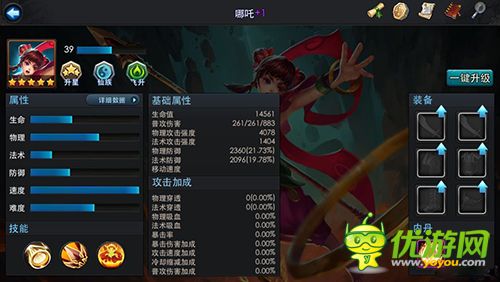 下面開始對(duì)比。兩個(gè)都升星一。內(nèi)丹都是一。加點(diǎn)4力一血。。同等級(jí)。無裝備。。對(duì)比看圖。在防御上雙方一樣。但在對(duì)穿透的防御上哪吒百分比差點(diǎn)。。至于血量。差距不大。畢竟一個(gè)是入游就送的角色。有一個(gè)值得注意的地方就是哪吒有法強(qiáng)。這一塊我猜是為大存在的。大的存在。臨時(shí)提高了哪吒的傷從272到520成倍的提升。(見圖)但大又有局限。就這么一圈。還有時(shí)限。。前面提到哪吒有法強(qiáng)。猴子是為零的。想到一個(gè)經(jīng)文羅睺對(duì)雙方的加成計(jì)算后。猴子是多195.03實(shí)際傷害。哪吒是180.906實(shí)際傷害。