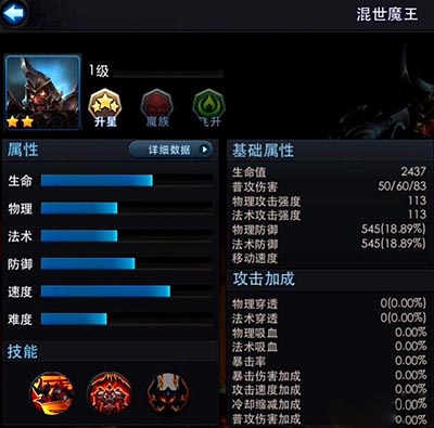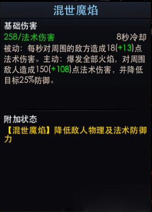 然后我們排除生命值、物防、法防(其他屬性就不貼圖了)對混世技能的影響??椿焓赖?技能(該技能物理法術都會提供加成,橙色的為物理加成,綠色的為法術加成)