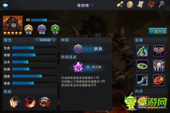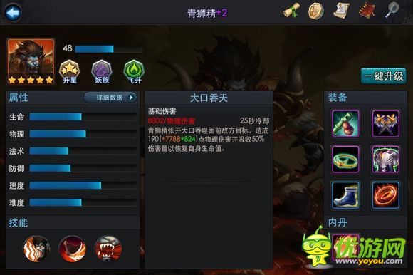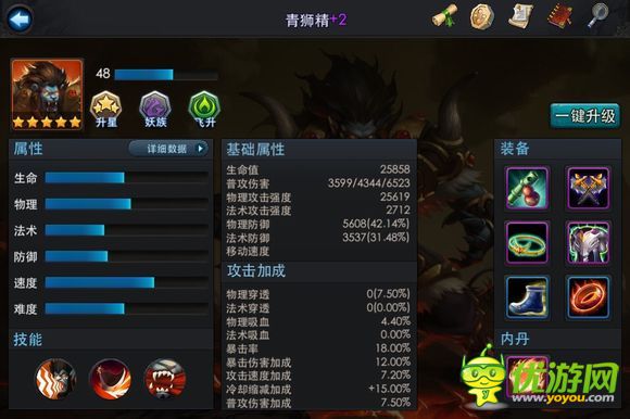 青獅可以說是法師克星,強化五星會減少30%法術(shù)傷害加強獅吼功對面法師就是擺設(shè)。下面有圖加上經(jīng)文加的物理防御獅子也可達到50%多的防御面對一個有輸出有回復(fù)有控制而且還很肉的獅子你不怕嗎?大家可以去培養(yǎng)下。