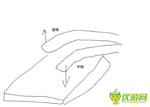 (2)利用錯位,用左手的中指和右手的食指點(diǎn)擊到應(yīng)該點(diǎn)擊的位置。這樣就利用雙手不同手指的錯位完成了輪流敲擊關(guān)鍵點(diǎn)的操作。當(dāng)然,你也可以用左手的食指和右手的中指完成同樣的操作。原理一致。
