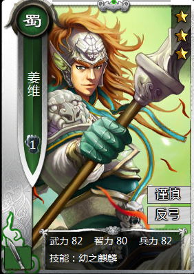 反弓謹(jǐn)慎1姜維武力 82智力 80兵力 82技能:幼之麒麟