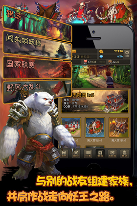 天地不仁,以萬物為芻狗,任何存在都是有意義的,人又如何,妖又如何??茨闳绾侮J過鎖妖大陣,一步一步踏上王者之位,俯視天地。游戲中闖關(guān)鎖妖塔,野區(qū)大亂斗,家族獵場,家族建設(shè),家族聯(lián)賽更是讓玩家互動不斷,驚喜不斷!