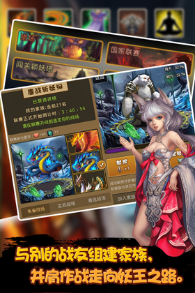 萬妖谷是新一代卡牌手游精美之作,游戲玩法多樣,系統(tǒng)豐富,畫面精美細膩,游戲突破性的放棄了6人作戰(zhàn)的傳統(tǒng)卡牌組隊模式,選擇了無上限軍團作戰(zhàn)方式。不再是簡單的收集卡牌,更有強大家族,萬千基友做后盾,為你組建妖精軍團,搜刮基友,挑戰(zhàn)世界boss提供保障,讓你迅速成為萬妖之王。