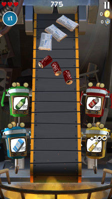 “對號入座”就是這個游戲的操作模式。把各種顏色的垃圾投進對應(yīng)顏色的垃圾桶里面就可得分。如果遇到好幾個顏色相同的垃圾,可以把它們串聯(lián)起來送入垃圾桶,分?jǐn)?shù)也比較高。游戲的插件,道具和裝備可以通過金幣購買,比如擴大垃圾桶容量,加速垃圾桶來回的速度,閃電打包機、油和冰清除器、涓流充電器等等。