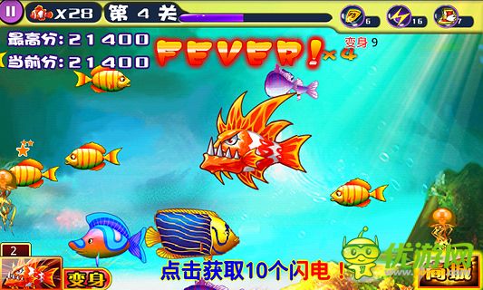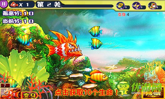 《大魚吃小魚饑餓游戲》是一款休閑益智類游戲,其運(yùn)用一種最簡單也是最刺激的方式演繹這大自然弱肉強(qiáng)食這一不變的法則。豐富的關(guān)卡設(shè)計、多變的敵人造型,超萌可愛的魚類,還有兇惡的首領(lǐng)級怪物等你挑戰(zhàn)。讓你在游戲中感悟人生的道理!
