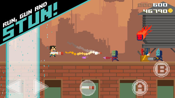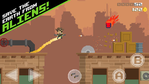 四個鍵,左右移動鍵,B鍵跳躍,A鍵射擊,上手沒有難度但是想拿高分得多花點功夫了,消滅外星人可撿到金幣,金幣可以用來買不同的服裝和造型,提高速度。來挑戰(zhàn)一下這不同風(fēng)格動作跑酷的游戲吧!