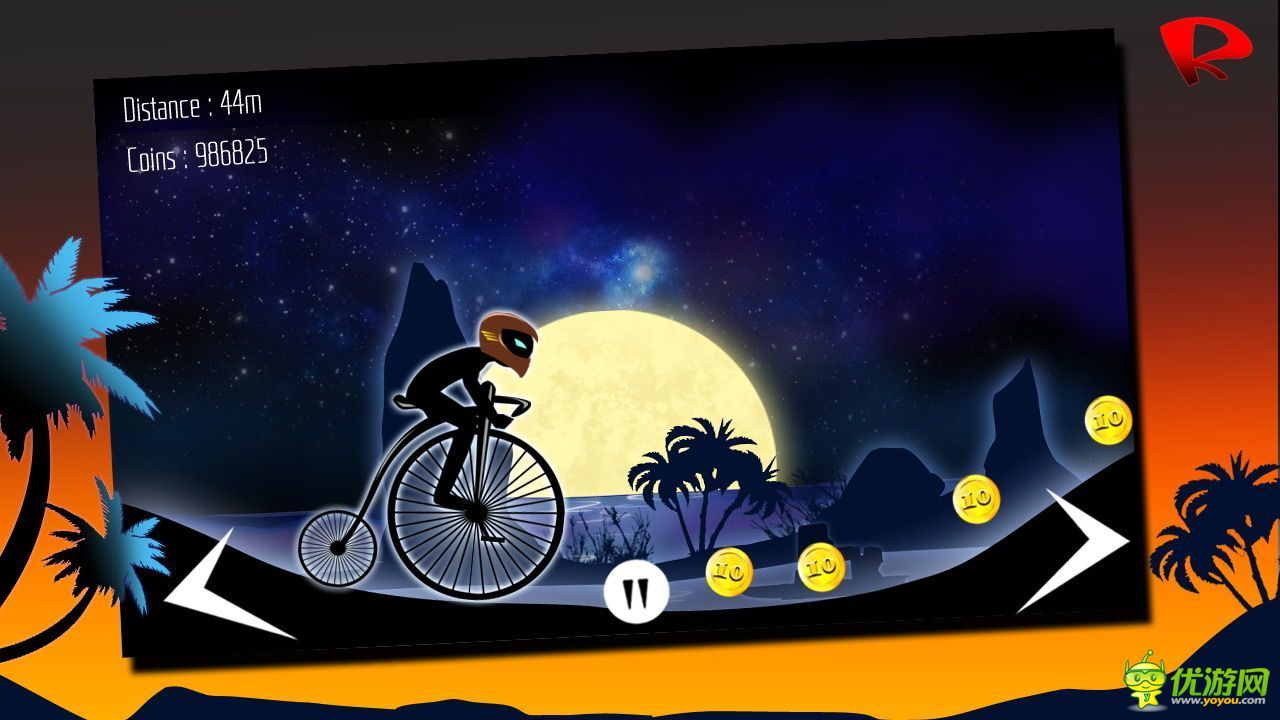 《山地自行車賽》是一款簡單靈動(dòng)的自行車游戲。Joiny住在一個(gè)大城市。有一天,他感到厭惡那些紛紛擾擾的場(chǎng)面,和巨大的城市壓力。他決定逃離這個(gè)城市,去探索美麗的新土地。你的任務(wù)是幫助Joiny,和他的一輛自行車,穿越崎嶇的山路。一路上,你將獲得寶貴的金幣來購買新的自行車,還能對(duì)他們進(jìn)行升級(jí)哦。