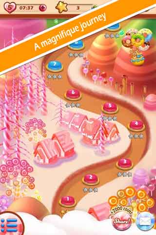 現(xiàn)在就來一場甜蜜的甜點王國之旅,點擊射擊,甜點爆炸時甜味四處彌漫! (1)100關(guān)的甜點爆破關(guān)卡,10個盛大劇情,讓你應(yīng)接不暇,甜到入心。 (2)連續(xù)消除召喚特色精靈,掉落甜點,激怒他們!造就巨大沖擊特技,帶來暴利分數(shù)。 (3)三種游戲模式各顯魅力,激發(fā)大量糖果四濺的首行消除,驚險刺激萬分的限時消除,巨量甜點掉落的擊破皇冠,讓你愛不釋手。 (4)死亡球,惡魔球,雙面球等等各式障礙等著你來挑戰(zhàn)。 (5)魔法球,魔法道具助你獲得高分,玩轉(zhuǎn)世界!