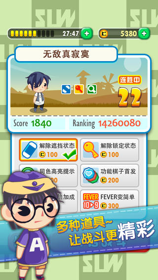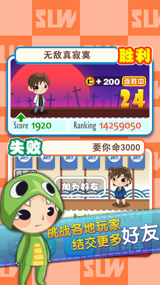 全民玩到手抽筋的連線消除游戲——《超級連線大戰(zhàn)》,開戰(zhàn)!快來和各地的對手一決勝負吧!游戲操作簡單,連結(jié)3個棋子就可以消除。消除棋子可以增加攻擊或防御,積累攻擊和防御就可以預(yù)防被對手打趴,同時狠狠打倒對手哦!你可以通過網(wǎng)絡(luò)挑戰(zhàn)世界各地的對手,爭取更高排名!也可以邀請好友進行切磋……或者泄憤,更有千奇百怪的發(fā)型、霸氣側(cè)漏的服裝、豐富多彩的場景,個性角色由你來定義!