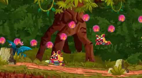 玩家能同時(shí)能控制三只角色進(jìn)行游戲,在實(shí)際操作中,你需要按下角色切換鍵來(lái)切換小怪獸。不同種類的小怪獸所擁有的能力也不一樣,如視頻所示,一只可以被踩踏,一只可以雙重跳躍,還有一只是可以向前猛沖。切換不同能力的角色,目的在于在多變的場(chǎng)景中行動(dòng)自如,克服各種障礙。