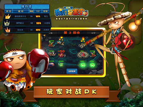 《我們是害蟲(chóng)》保留多關(guān)卡的經(jīng)典塔防玩法,相較于《保衛(wèi)蘿卜》,游戲增加了可組隊(duì)下副本的PVE玩法,競(jìng)技場(chǎng)排名對(duì)戰(zhàn)的PVP玩法,塔蟲(chóng)進(jìn)階、裝備強(qiáng)化的養(yǎng)成玩法,讓塔防游戲不再單一。